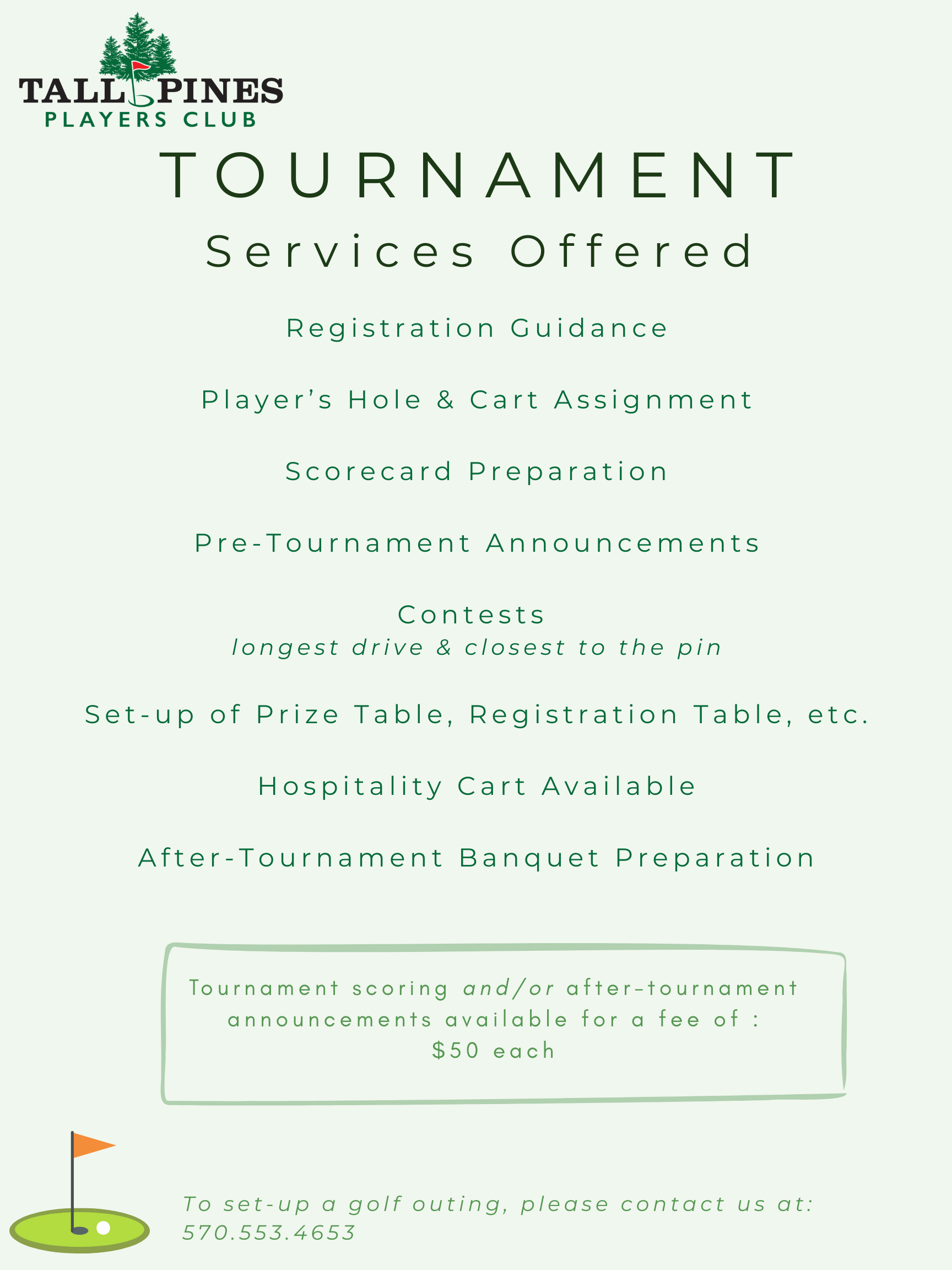 At Tall Pines we will customize your tournament package to meet all of your needs.